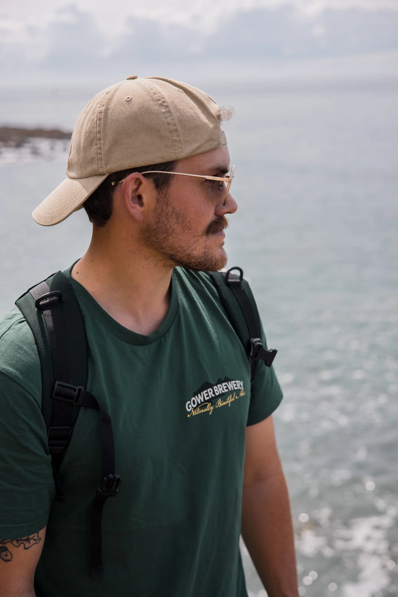 The classic Gower Brewery T-shirt, with the Gower Brewery logo to the reverse and 'Naturally Beautiful Ales' and Three Cliffs motif to the front, available in grey and green.